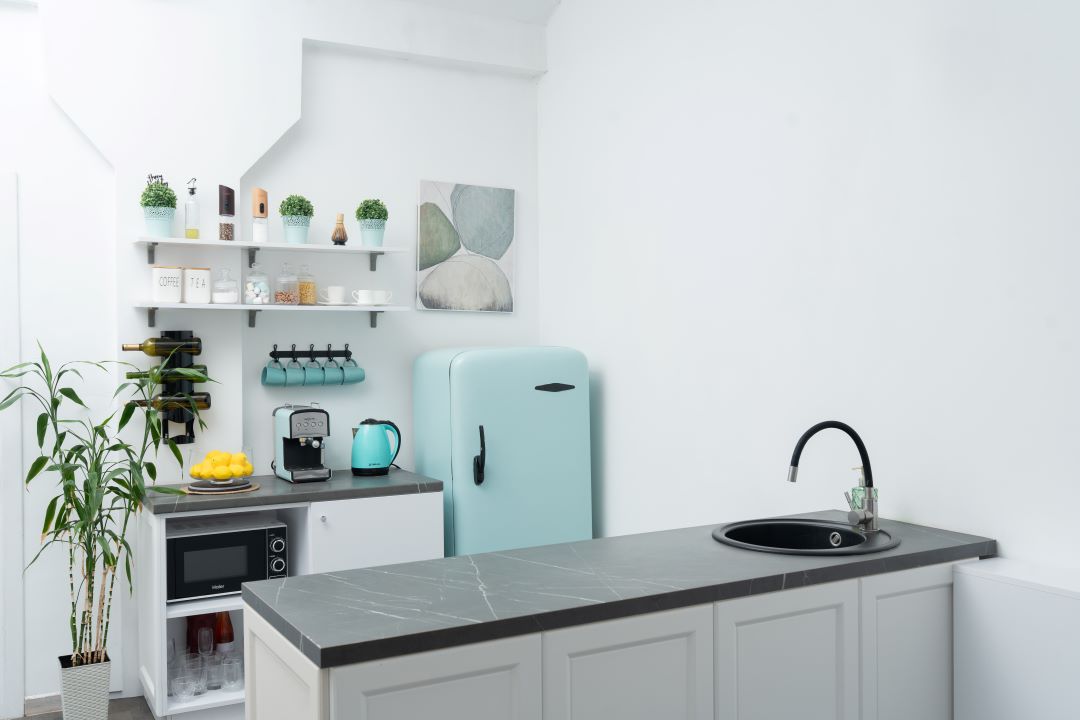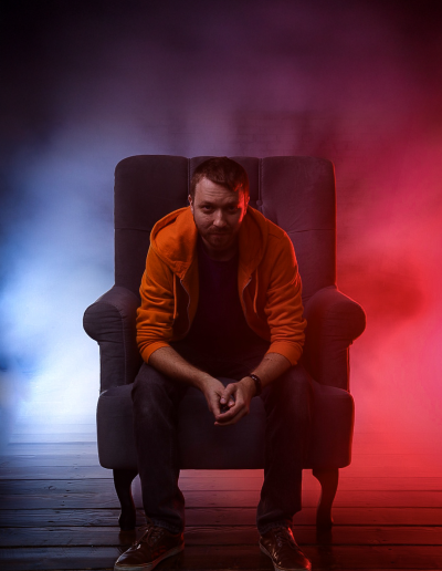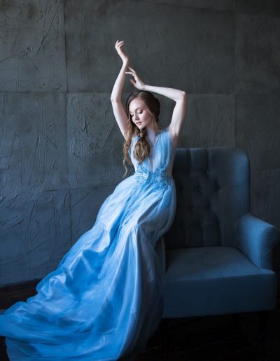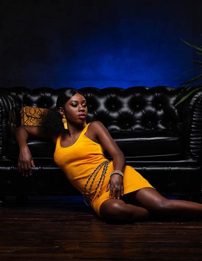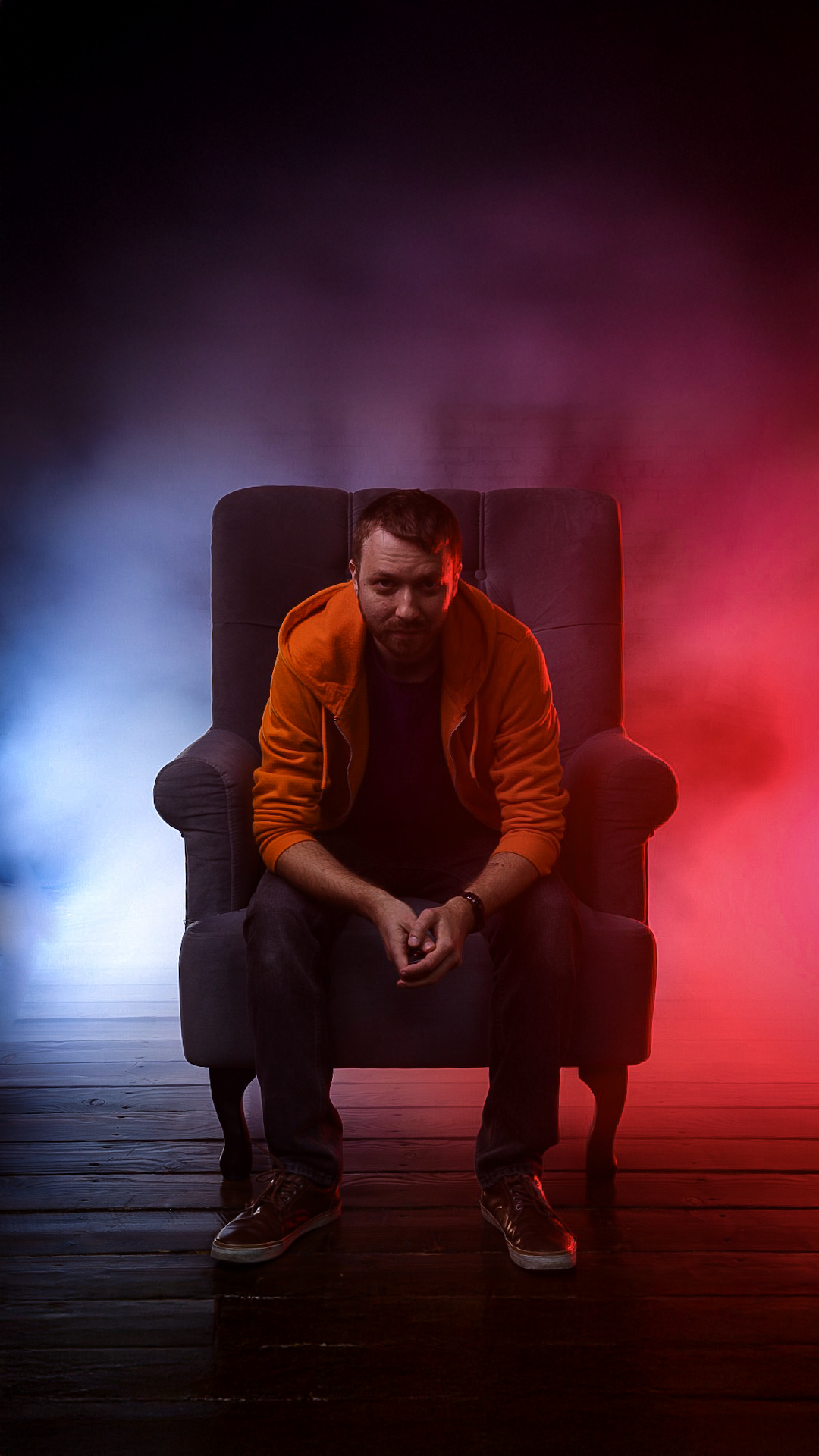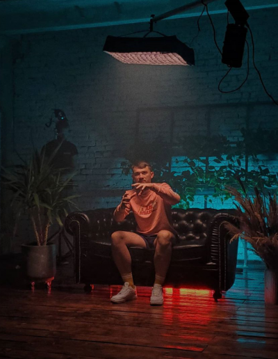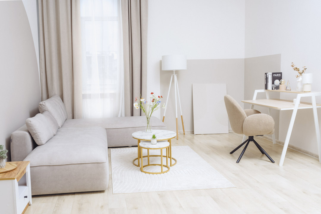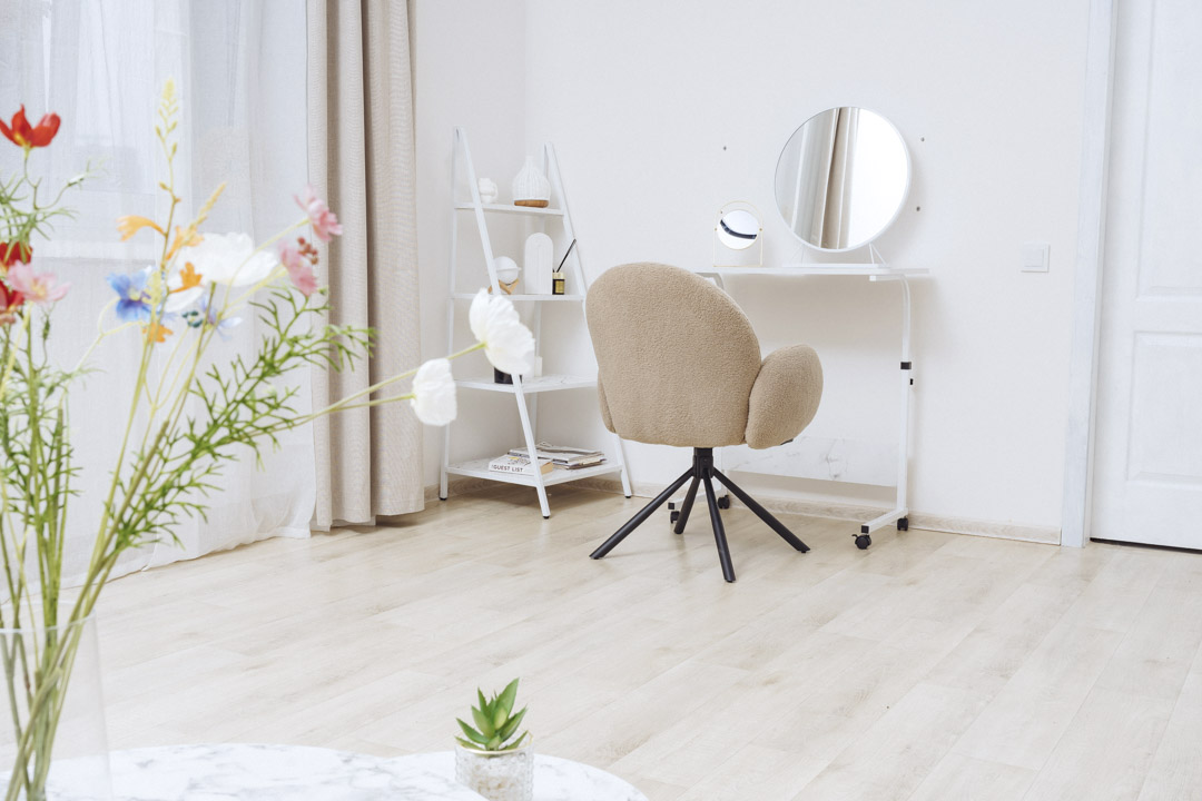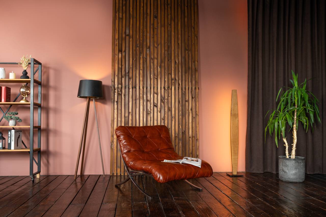 - У лофті є шкіряний диван, зелень, велике дзеркало, м’який стілець та інший реквізит