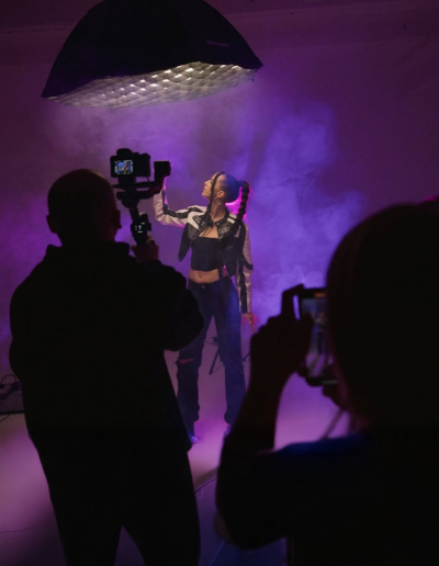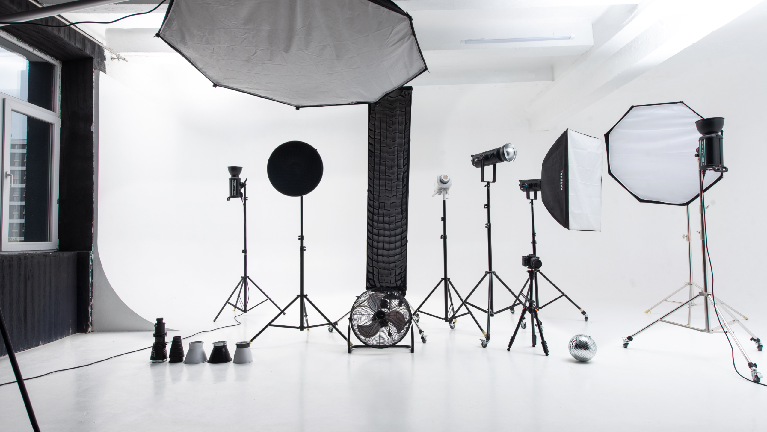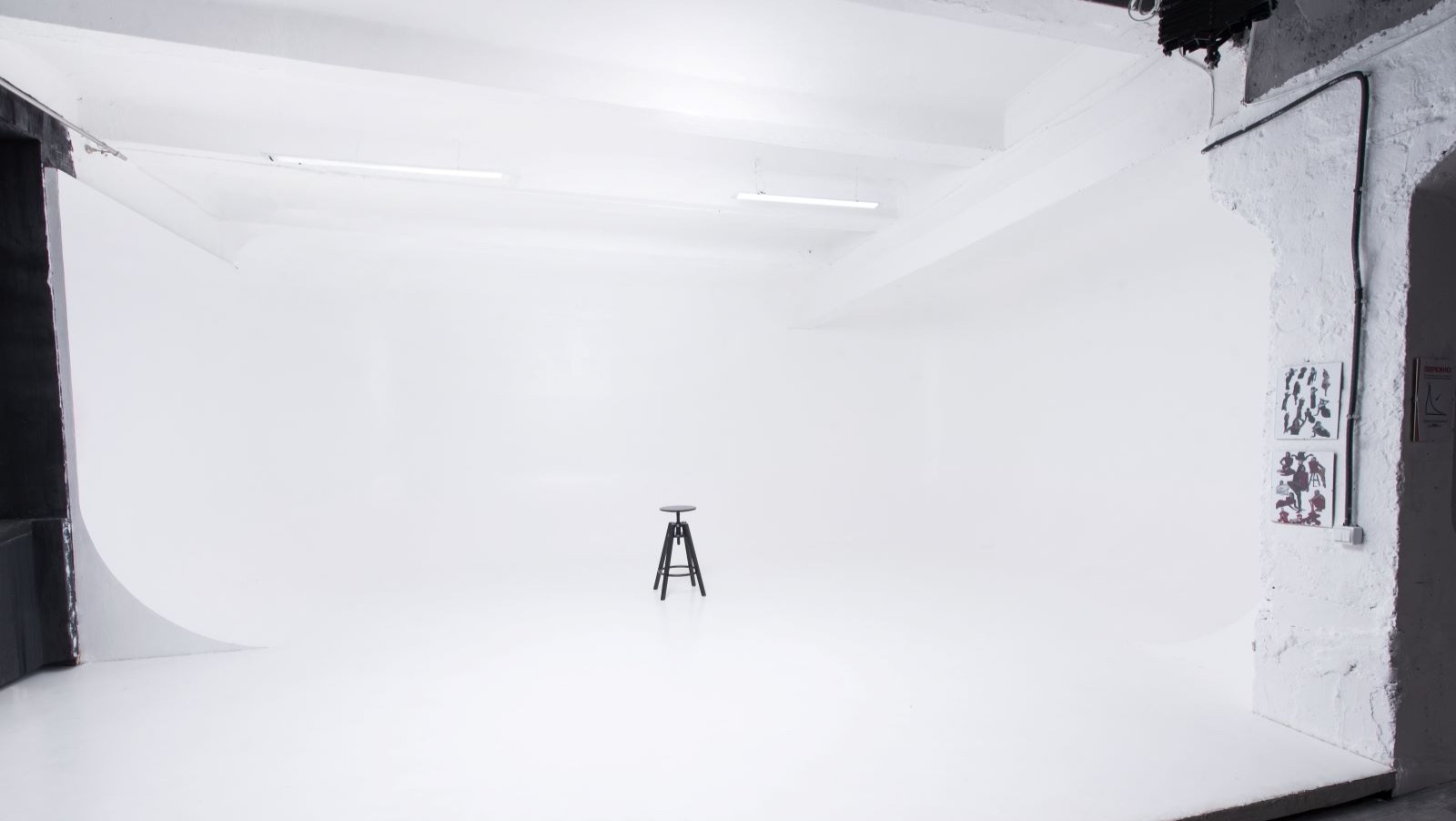 - Велика кутова біла безшовна циклорама площею 100 м²